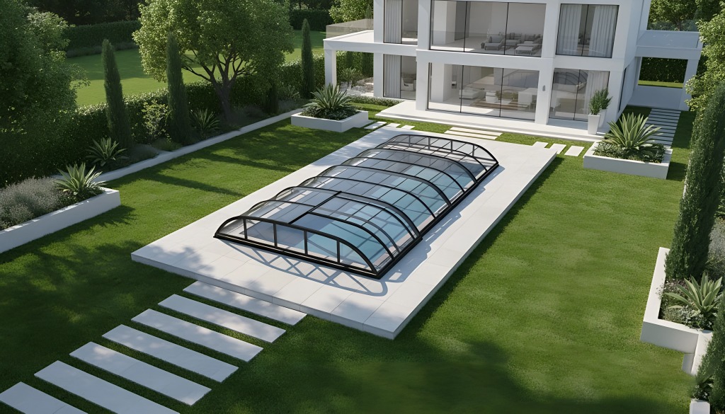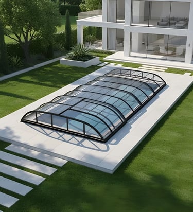 يُعد نموذج غالاطا الخيار الأمثل لمن يبحث عن حماية فائقة للمسبح دون المساس بجمال التصميم المعماري. يتميز هذا الموديل بارتفاعه المنخفض وشكله الانسيابي الذي يندمج بسلاسة مع حديقة الفيلا.