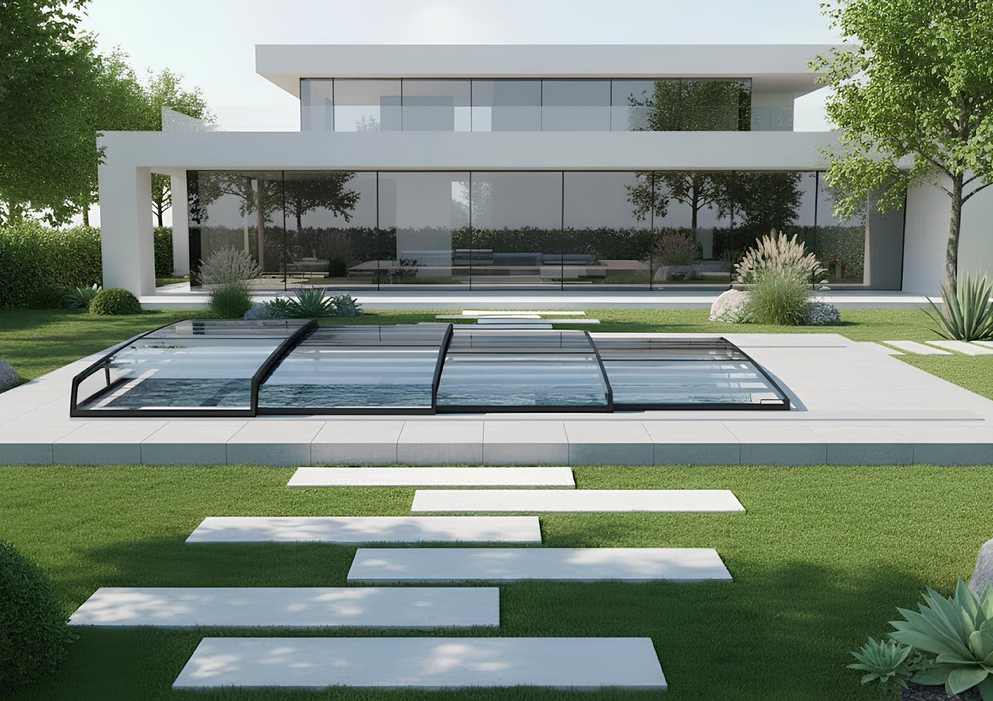 الخيار الأمثل لعشاق التصميم المودرن؛ غطاء مسطح تماماً يمنح مسبحك مظهراً عصرياً وجذاباً مع الحفاظ على أعلى مستويات الحماية.