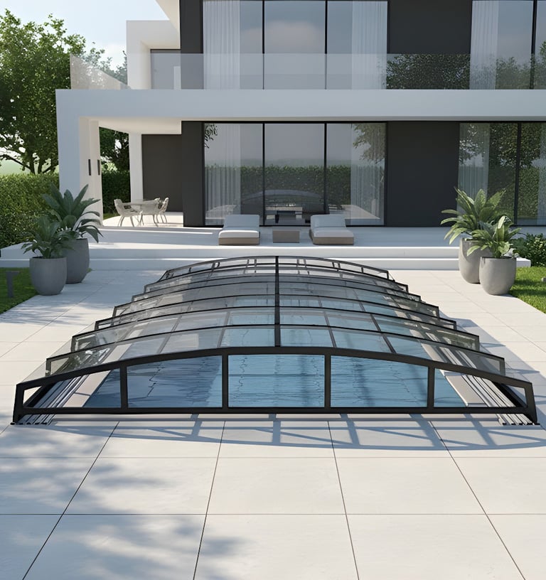 🌊 موديلات مسطحة وشفافة: توفر حماية كاملة للمسبح دون أن تحجب جمال الإطلالة والمناظر الطبيعية.