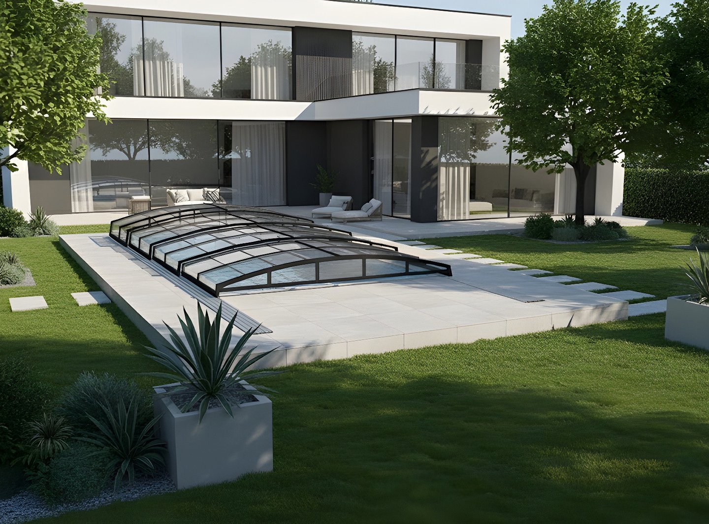 Evinizin dış mimarisini bozmadan ve manzaranızı kapatmadan havuzunuzu akıllıca koruyan ideal tasarım.